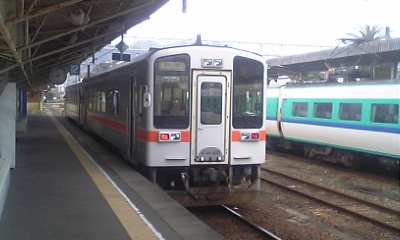 熊野川を渡ると、いよいよ三重県に入り鵜殿駅。一端内陸によっていた線路も、ここからは海岸沿いに戻る。しかし、今度は国道42号線や防風林が目立ち、やや海は遠い。