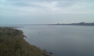 新宮を発車するとすぐにトンネルに入る。そのトンネルを抜けると熊野川河口を渡る長い鉄橋。河口も見える。