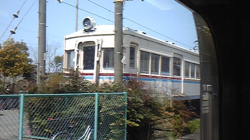 駅間が長いせいだろうか、途中に信号所があり、さらに次の東松江も行き違い駅。さらに次の中松江も行き違い駅となっていて、さらに次の八幡前で対向車とすれ違う。